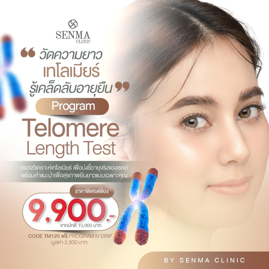 Senma Clinic ให้บริการตรวจ Telomere Length โดยทีมแพทย์ผู้เชี่ยวชาญ พร้อมเทคโนโลยีที่ทันสมัย มาตรฐานระดับสากล
